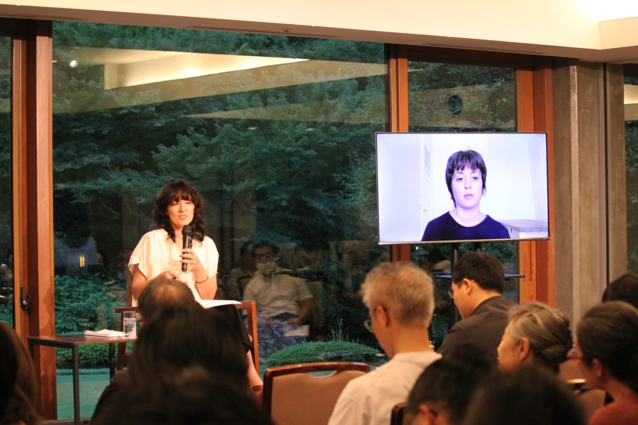 Filmmakers Katelyn Rebelo and Kira Matsubara-Dane have collaborated on numerous documentary works, blending poetic storytelling with hand-drawn animation. For the U.S.-Japan Creative Artists Program, they developed “72 Microseasons,” an animated documentary inspired by 24 Solar Terms and 72 Microseasons in the Japanese lunisolar calendar, and a record of a multi-generational family living in Chimata of Yoshino Town. At the talk event held at International House of Japan on August 14, Kira joined onsite and Caitlin participated remotely to present the project.